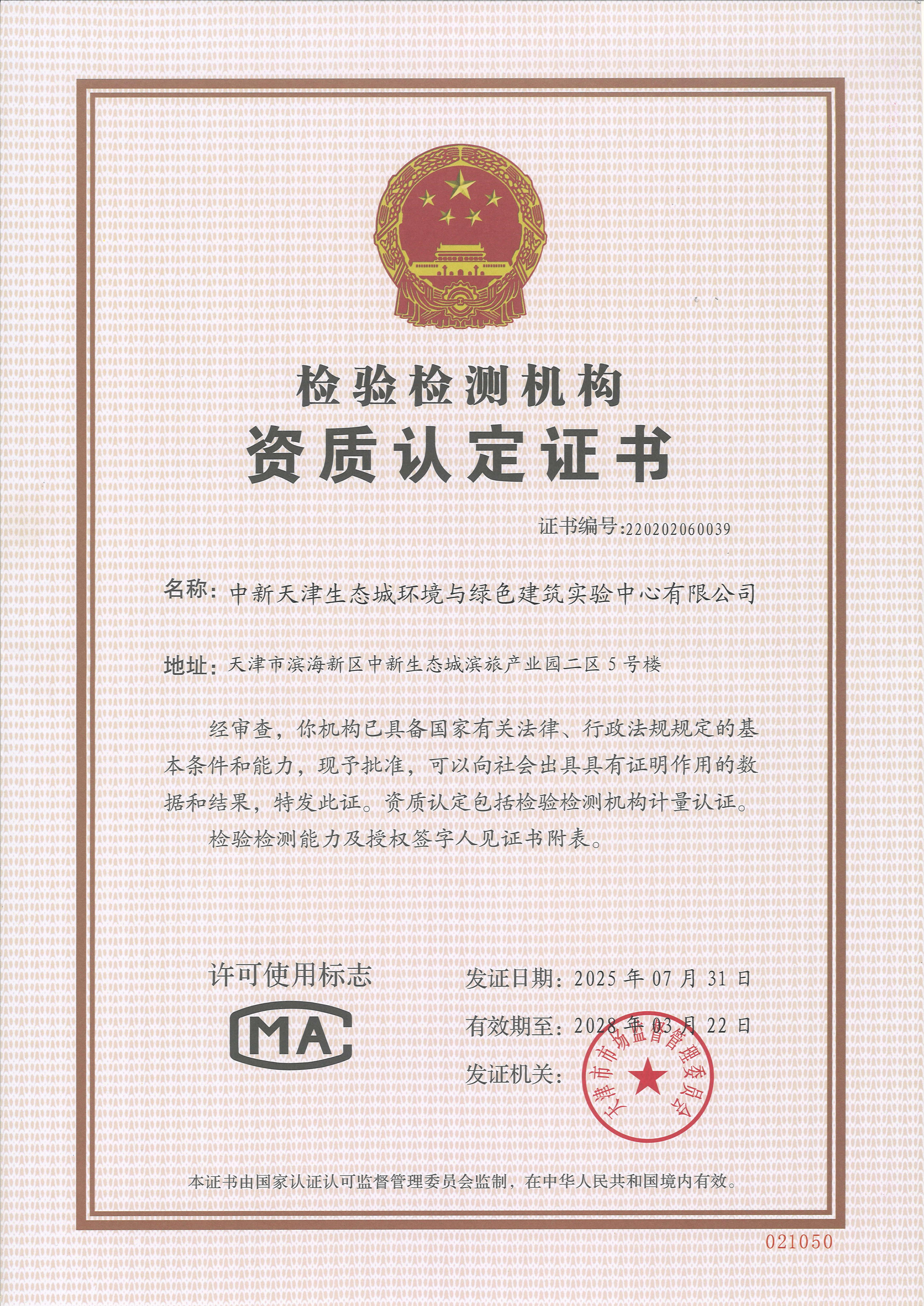中新天津生態(tài)城環(huán)境與綠色建筑實(shí)驗(yàn)中心有限公司